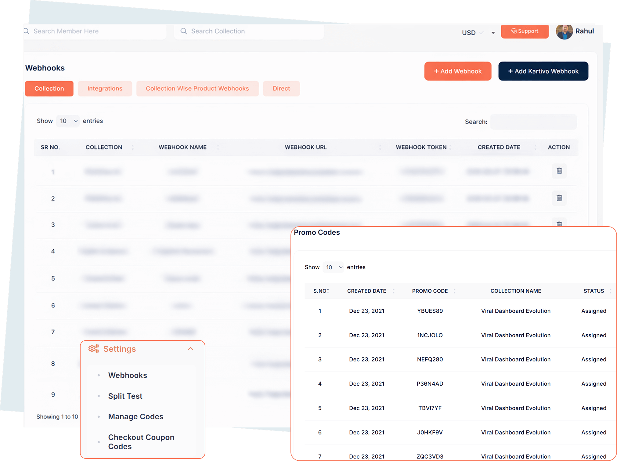 Manage webhooks, split tests, promo codes, integrations, and checkout settings from one powerful control panel.